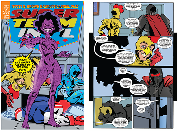 With Blue Beetle missing, Gamma Rei Burst in space, and Rollerblade and Lt. Flag in the grips of the US government, Super Team International does what any self-respecting group of heroes would do: Hold a recruitment drive.
